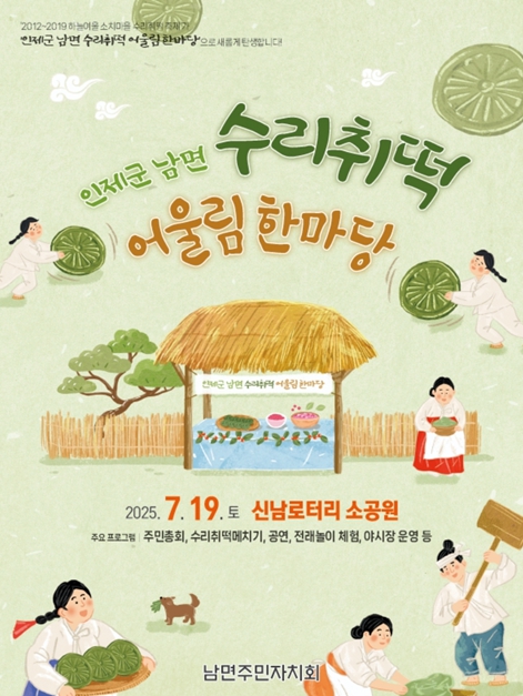 먼저 인제군의 남문인 남면에서는 7월 19일 ‘남면 주민자치회’의 주관은로 ‘남면 수리취떡 어울림 한마당’이 개최된다.