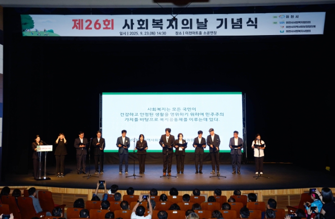 [뉴스노크=김인호 기자] 이천시는 9월 23일 오후 3시 이천아트홀 소공연장에서 ‘제26회 사회복지의 날 기념행사’를 개최했다.