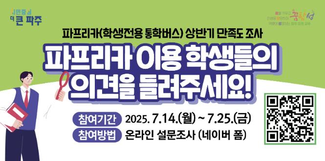 파주교육지원청 전선아 교육장은“작년 대비 전반적으로 학생들의 만족도가 높아진 만큼 파주 학생들의 교통 여건이 더 나아졌길 바라며, 학생들의 다양한 의견을 듣고, 앞으로도 파주 학생들의 보다 편리한 통학길을 위해 최선을 다하겠다”고 전했다.