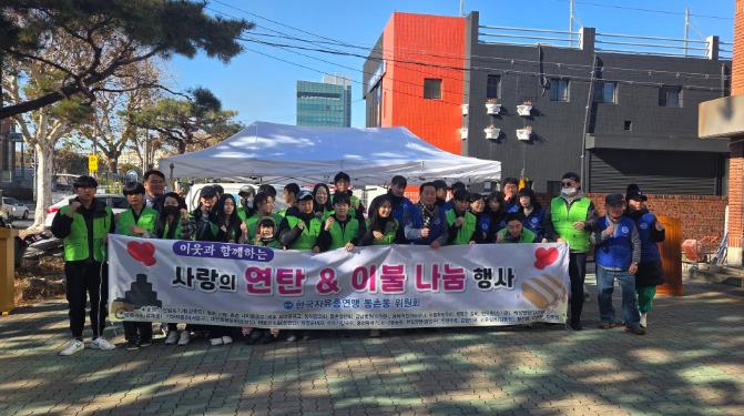 행사에는 한국자유총연맹 동촌동 위원회 회원들과 자원봉사자 30여명이 참여해 겨울철 추위에 어려움을 겪고 있는 저소득 세대에 연탄 400장과 이불 20채를 기탁했다.