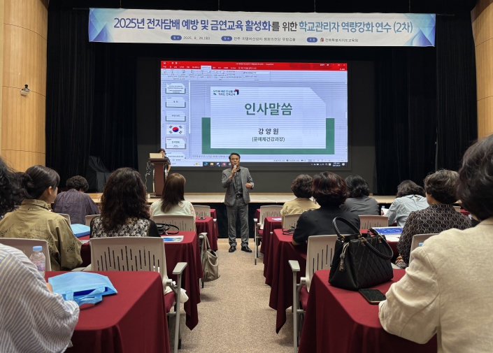 이 연수는 청소년의 전자담배 사용 확산과 신종 담배로 인한 건강 피해 예방, 나아가 마약류 노출 위험에 대응하는 학교 관리자의 역량을 강화하기 위해 마련됐다.