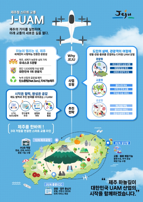 특히 정부가 지자체에 직접 국비를 지원하는 최초 사업으로, 민선 8기 핵심 공약인 도심항공교통(UAM) 상용화 추진에 적극 나서온 제주도의 노력이 결실을 맺었다.