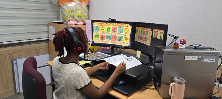 ▲ 창의융합교육원, ‘Summer English Book Club’ 운영 Tumelo 교사가 학생들에게 화상수업을 진행하고 있다(창융원). |