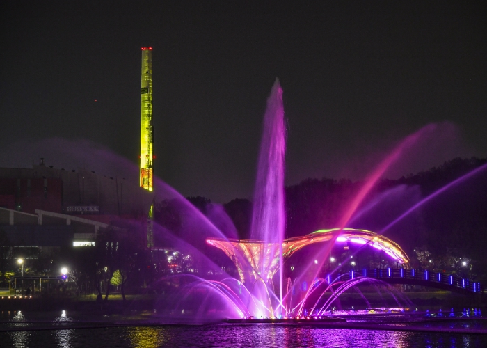 | ▲ 김포시가 도시재생 및 야간정책에 선도적으로 나서고 있다. 올해 6월 산업시설 넘어 공공예술작품으로 재탄생한 김포한강자원화센터굴뚝에서 개최된 야외공연 사진 |