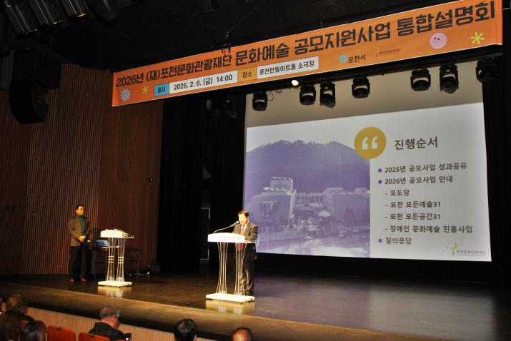 이번 통합설명회는 2026년 추진 예정인 문화예술 지원사업 전반을 공유하고 지역 예술인들과의 소통을 강화하기 위해 마련된 자리로, 포천시 예술인과 시민, 문화예술 활동가 등 141명이 참석해 높은 관심 속에 진행됐다.