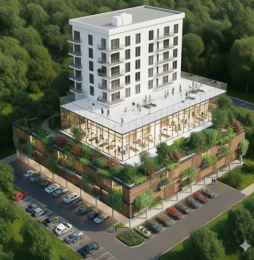 건물은 지상 8층 1개 동 규모로 연면적 6,500㎡이며, 1~2층에는 주차장 100면을 조성하고 3층에는 약 750㎡ 규모의 복합체력단련(피트니스)센터를 설치한다.