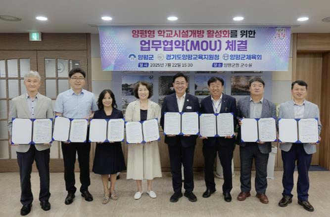 [뉴스노크=김인호 기자] 양평군은 지난 22일 양평군과 경기도양평교육지원청, 양평군체육회와 함께 “학교체육시설 개방”을 위한 3자 간 업무협약(MOU)을 체결했다고 밝혔다. 이번 협약은 지자체, 교육기관, 체육단체가 함께 지역사회 생활체육 활성화와 주민복지 개선을 위해 힘을 모으는 의미있는 자리였으며, 학교체육시설 개방 거점학교로 함께 출발하는 강상초, 다문초, 양평동초, 조현초, 양평중 교장선생님들도 함께 자리했다.