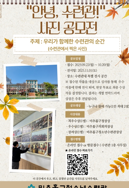 ▲ 안녕, 수련관!’ 사진 공모전 진행 |
