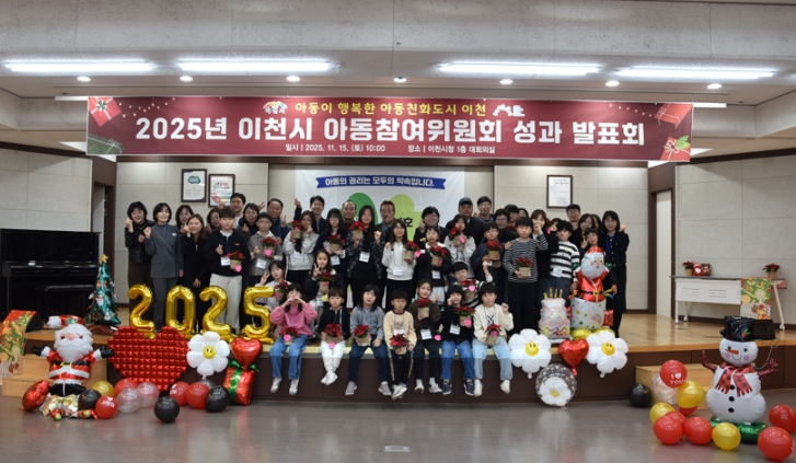 [뉴스노크=김인호 기자] 이천시는 11월 15일 오전 10시, 이천시청 대회의실에서 ‘2025년 아동참여위원회 연간활동 성과 발표회’를 개최했다. 행사에는 이천시 아동참여위원, 아동친화도시 추진위원회 위원 및 보호자 등 60여 명이 참석했다.