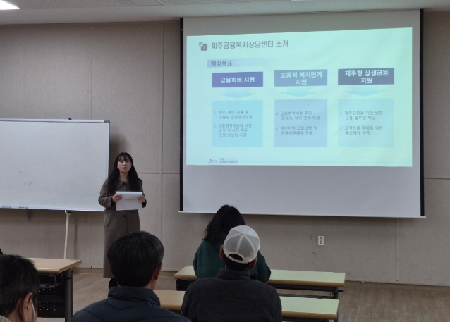 [뉴스노크=김인호 기자] 제주금융복지상담센터(센터장 부성진)는 2월 3일 서귀포오름지역자활센터를 방문해 자활근로 참여주민을 대상으로 금융복지 상담 안내 및 교육을 실시했다고 밝혔다.