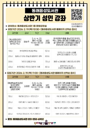 | ▲ 동래구 도서관, 2026년 상반기 성인 강좌 수강생 모집 |