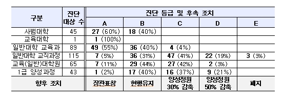 - 사범대학 설치 대학 및 미설치 대학에 역량진단 결과 통보