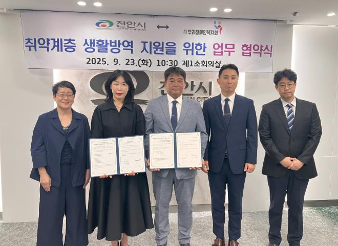 [뉴스노크=김인호 기자] 천안시는 (사)두리장애인복지회와 ‘취약계층 생활방역 서비스 업무협약’을 체결하고 무료 생활방역 지원 대상을 저장강박 의심가구까지 확대한다고 23일 밝혔다.