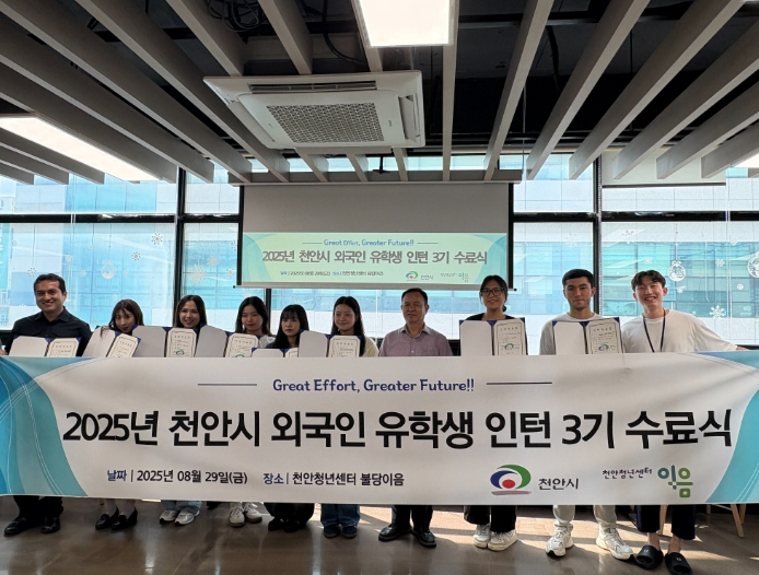 [뉴스노크=김인호 기자] 천안시는 ‘2025년 외국인 유학생 인턴사업’에 참여한 외국인 유학생 11명이 지역 내 6개 기업서 근무를 완료했다고 29일 밝혔다.