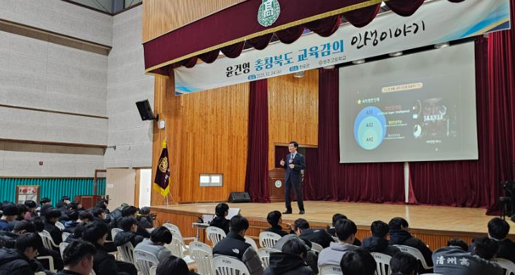 [뉴스노크=김인호 기자] 청주고등학교은 24일, 윤건영 충청북도교육감이 청주고등학교를 방문해 학생들을 대상으로 특별 강연을 진행했다고 전했다.