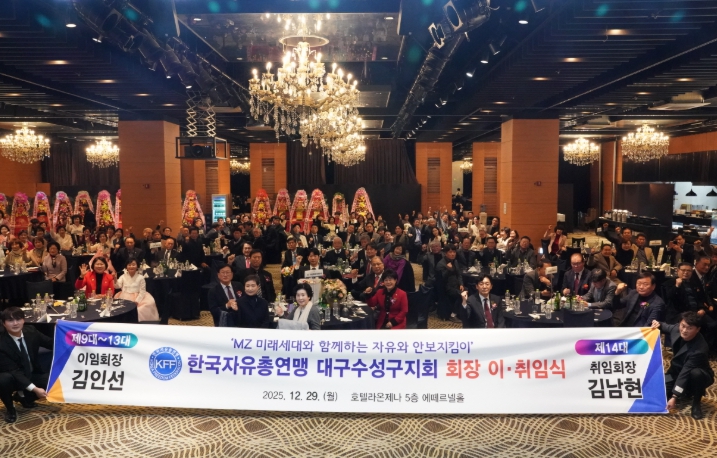 이날 행사에 참석한 김대권 수성구청장은 축사를 통해 “15년간 헌신해 오신 김인선 회장님의 노고에 깊이 감사드리며, 김남현 신임 회장님의 취임을 진심으로 축하드린다”며 “수성구 자유총연맹이 앞으로도 자유민주주의 가치 수호와 지역 공동체 발전에 중심적인 역할을 해주길 기대한다”고 말했다.