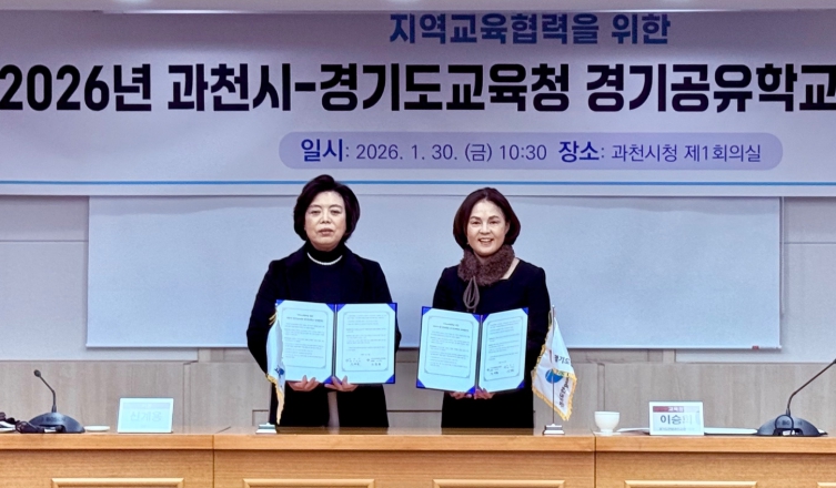 [뉴스노크=김인호 기자] 안양과천교육지원청은 1월 30일, 과천시청에서 과천시(시장 신계용)와 지역의 교육자원을 활용한 학생 맞춤형 미래교육 확대와 지속 가능한 지역교육협력 체계 구축을 위해 '2026 지역교육협력을 위한 과천시–경기도교육청 경기공유학교 업무협약'을 체결했다.