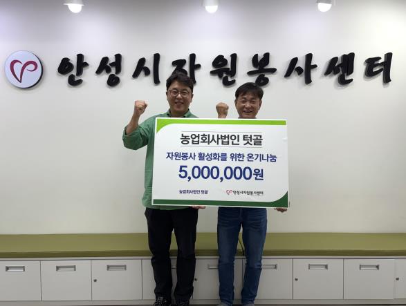이날 전달식에는 농업회사법인 텃골의 우주석 대표와 안성시자원봉사센터 김동성 센터장이 참석했으며, 지역 내 자원봉사 문화 확산을 위한 기부금 500만 원이 전달됐다. 해당 기부금은 자원봉사 활성화를 위한 프로그램 개발 및 활동 운영에 사용될 예정이다.