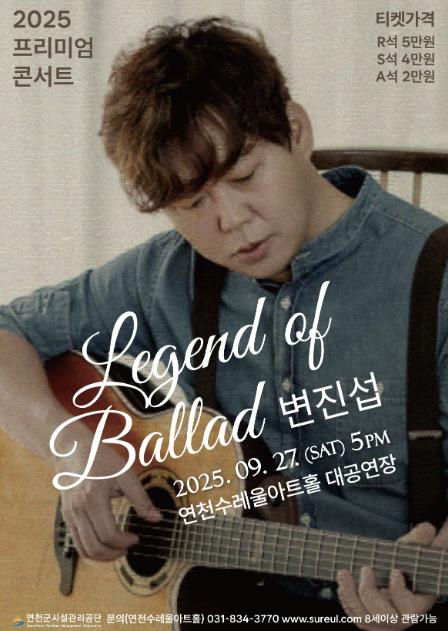 [뉴스노크=김인호 기자] 연천수레울아트홀은 오는 9월 27일 오후 5시 대한민국 발라드의 전설, ‘변진섭’의 단독 콘서트 'Legend of Ballad'를 개최한다.