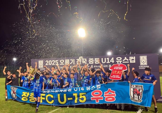 [뉴스노크=김인호 기자] 장흥군 축구 스포츠클럽인 장흥FC가 충남 천안에서 열린 ‘2025 오룡기 전국 중등 축구대회’에서 저학년부(U-14) 우승을 차지했다.