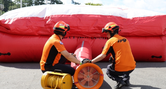 [뉴스노크=김인호 기자] 장흥소방서는 8월 29일 오전 청사 앞에서 공동주택 등 고층건축물 화재에 대비한 사다리차 운용과 인명구조매트 전개 훈련을 실시했다.