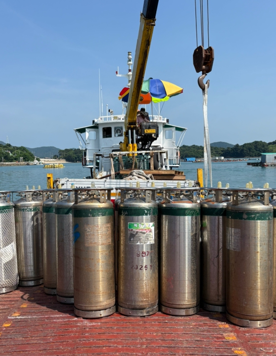 ▲ 여수시는 이번 추가 예산으로 액화산소 충전 물량을 기존 880통에서 750통을 추가해 총 1,630통으로 대폭 확대하고, 액화산소 해상 운반 지원 횟수 확대를 병행해 현장 공급을 신속히 하고 양식장 안정화에 총력을 기울일 계획이다. |