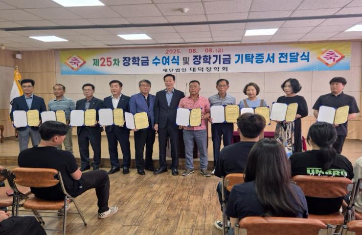 [뉴스노크=김인호 기자] 장흥군 대덕읍 대덕장학회는 8일 대덕읍행정복지센터에서 ‘2025년 제25차 장학금 수여식 및 장학기금 기탁증서 전달식’을 개최했다.
