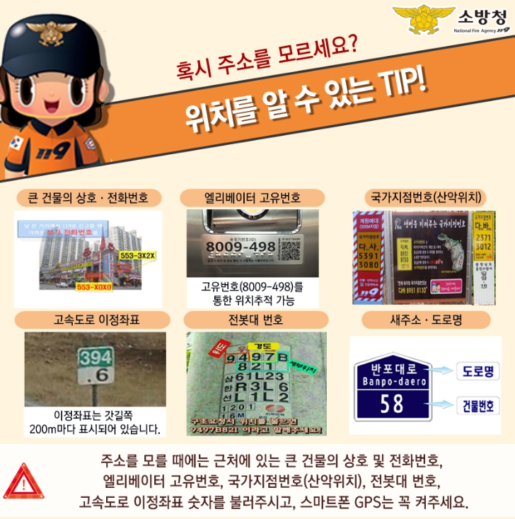 특히 휴대전화 신고 시 위치 정보가 자동으로 전달되더라도 보다 신속한 출동을 위해 건물명, 주변 상호, 도로명 등 추가적인 위치 정보를 함께 전달하는 것이 중요하다.