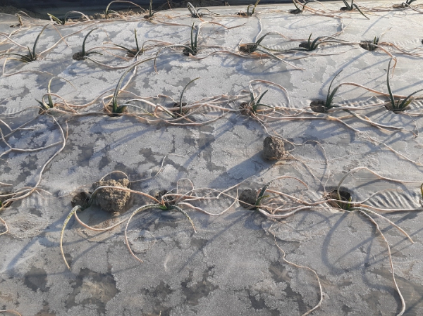 | ▲ 건조한기상으로인해잎이많이마른양파 |