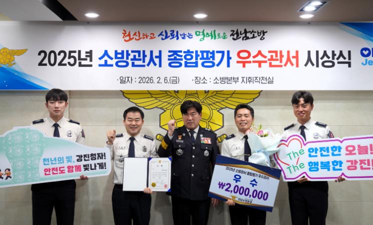 한편, 이날 시상식에는 도내 7개 소방서가 참석했으며, 우수 관서로 선정된 강진소방서는 도지사 표창과 함께 포상을 받았다.