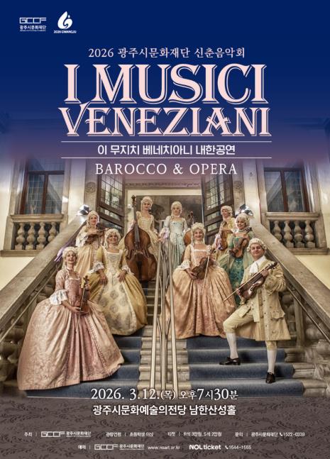 [뉴스노크=김인호 기자] (재)광주시문화재단은 2026년 신춘음악회로 이탈리아 베네치아니를 기반으로 활동해온 바로크앙상블 〈이 무지치 베네치아니(I Musici Veneziani) 내한공연 – Barocco & Opera〉를 개최한다. 이번 공연은 베네치아 황금시대의 음악과 문화를 무대 위에 생생히 재현하며, 관객들에게 클래식을 통한 특별한 시간여행을 선사할 예정이다.