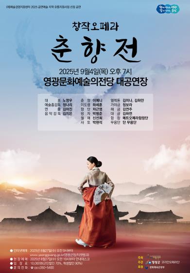 [뉴스노크=김인호 기자] 영광군은 오는 9월 4일 오후 7시에 영광문화예술의전당 대공연장에서 한국 창작 오페라의 대표작 ‘춘향전’을 공연한다.