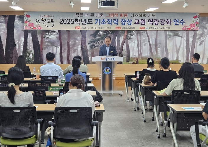 [뉴스노크=김인호 기자] 경상북도울진교육지원청은 9월 24일 관내 초·중학교 기초학력 담당 교사와 희망 교사 23명을 대상으로 2025학년도 ‘그림책 활용 기초학력 지도 역량 강화 연수’를 실시했다. 이번 연수는 그림책을 통한 학생 맞춤형 학습지원과 기초학력 보장을 위한 실제적 지도 역량을 기르는 데 중점을 두었다.