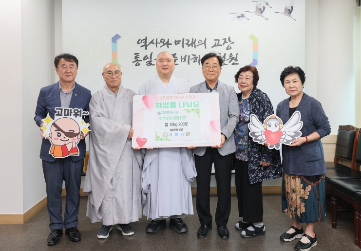 [뉴스노크=김인호 기자] 심원사에서 추석 명절을 맞아 지난 24일 철원군청을 방문하여 사랑의 이웃돕기 동참의 뜻을 밝히며 500만원 상당의 철원오대쌀(10kg) 200포를 기탁했다.