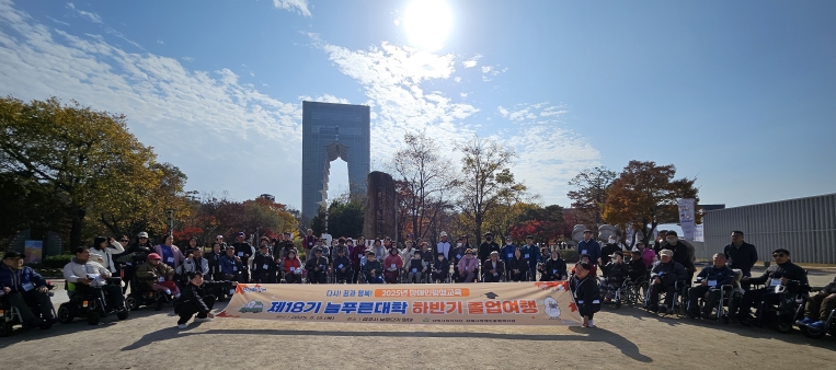 [뉴스노크=김인호 기자] (재)김해시복지재단 장애인종합복지관은 지난 13일 제18기 늘푸른대학 졸업을 맞이하여 프로그램 참여자 80여명과 함께 『제18기 늘푸른대학』 졸업여행을 실시했다.