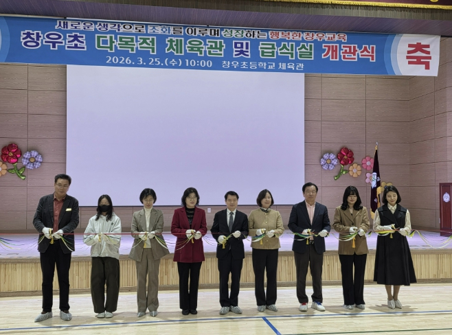 창우초등학교는 3월 25일 교내에서 ‘2026 창우 다목적 체육관 및 급식실 개관식’을 개최했다고 밝혔다. 이날 행사에는 광주하남교육지원청 교육장과 하남시장, 학생회장, 시공 및 감리업체 관계자, 하남지구 교장단, 교육지원청 및 하남시청 관계자, 학교운영위원회 위원, 학부모회 임원 등 교육공동체와 지역 인사들이 참석해 개관을 함께 축하했다.