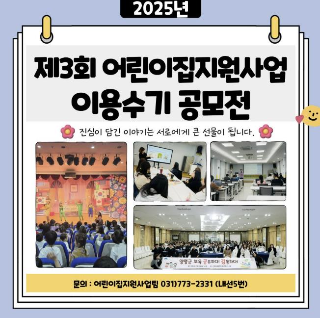 ▲ 양평군육아종합지원센터, ‘제3회 이용수기 공모전’ 개최 |