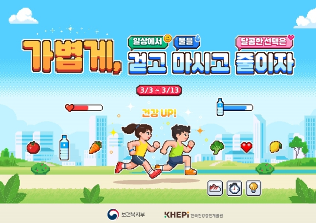 이번 캠페인은 3월 4일 비만예방의 날을 맞아 비만 예방의 중요성을 알리고 시민의 자발적인 건강생활 실천을 확산하고자 마련됐다. ‘가볍게, 걷고, 마시고, 줄이자’ 슬로건을 중심으로 일상 속 걷기 실천, 물 섭취 늘리기, 당 섭취 줄이기 등 생활습관 개선을 유도한다.