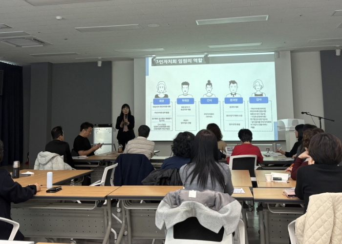 이번 교육은 2025년 10월 대규모로 위원 위촉이 됨에 따라, 새롭게 직무를 맡은 주민자치회 회장, 부회장, 간사, 감사, 분과장 등이 각 직책의 역할을 명확하게 이해할 수 있도록 직무별로 구분해 진행했다.