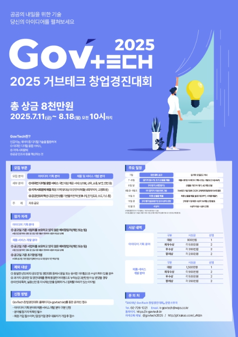 [뉴스노크=김인호 기자] 과학기술정보통신부는 2025년 정부기술(GovTech) 창업경진대회 참가자를 7월 11일부터 8월 18일까지 모집한다고 밝혔다.