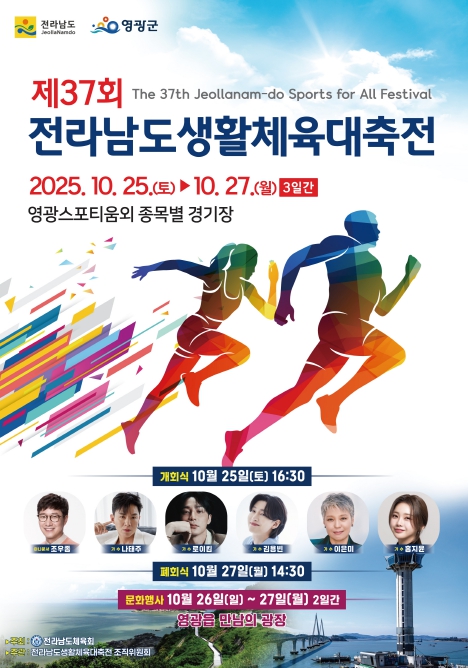 [뉴스노크=김인호 기자] 전라남도체육회가 주최하고 전라남도 생활체육대축전 조직위원회가 주관하는 제37회 전라남도생활체육대축전이 10월 25일 오후 4시 30분, 영광스포티움 종합운동장에서 성대하게 막을 올린다.