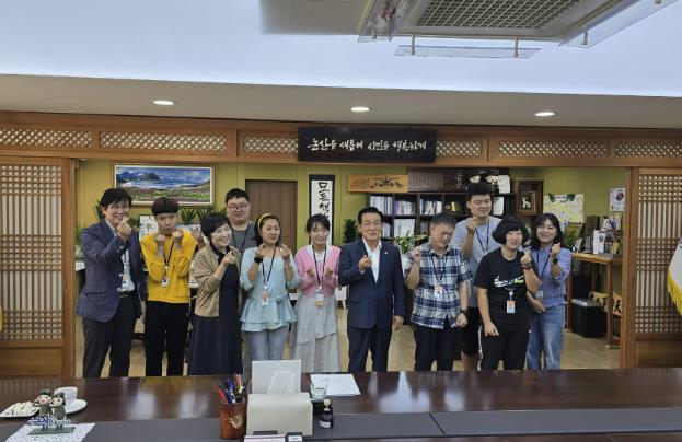 [뉴스노크=김인호 기자] 논산시는 23일 관내 직업재활 시설인 ‘논산발그래일터’ 하주현 이사장과 종사자, 소중한사람들 근로자 7명을 초청해 소통의 자리를 마련했다.