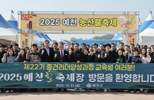 [뉴스노크=김인호 기자] 예천군은 31일, 경상북도 인재개발원 제22기 중견리더양성과정 교육생 113명이 한천체육공원을 찾아 ‘2025 예천활축제·농산물축제’를 둘러보고 주요 프로그램을 체험했다고 밝혔다.