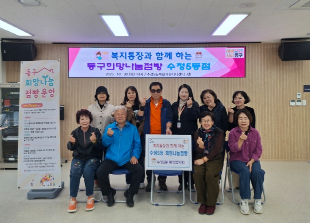 통장협의회 하윤식 회장은 “통장들의 정성을 모아 마련한 후원금으로 이번 희망나눔점빵을 운영하게 되어 매우 기쁘다”며, “수정5동 통장협의회는 앞으로도 지역 내 나눔문화 확산에 힘쓰고, 동 찾아가는 복지팀과 협력하여 우리동네 어려운 이웃을 발굴·지원하기 위해 적극 노력하겠다”고 밝혔다.