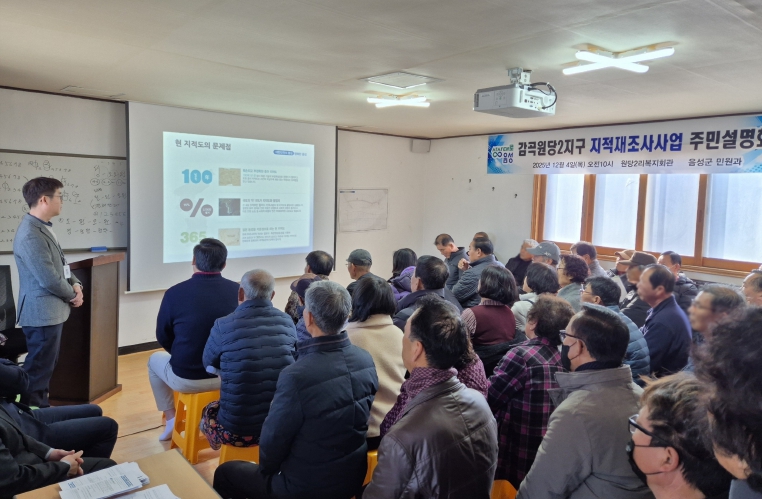 [뉴스노크=김인호 기자] 음성군은 4일 감곡면 원당2리 복지회관에서 2026년도 591필지(75만5146㎡) 감곡원당2지구 지적재조사사업에 대한 주민설명회를 개최했다.