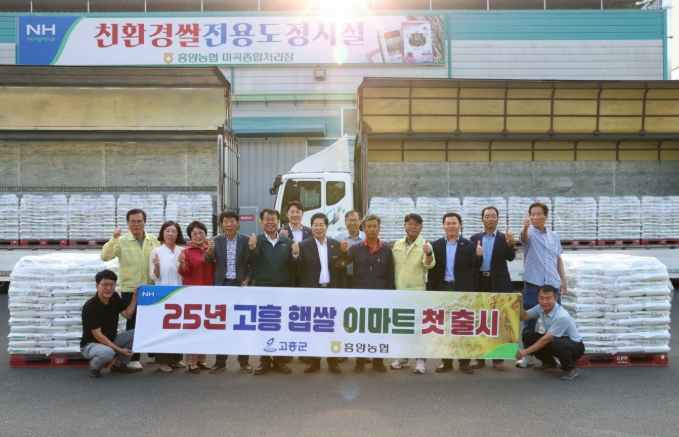 군과 흥양농협은 27일 흥양농협 미곡종합처리장에서 ‘바다품은 쌀’ 출하 상차식을 열고, 올해 수확한 조생종 햅쌀 10kg 1만 8천여 포대(약 180톤)를 전국 주요 이마트 매장으로 출하했다.