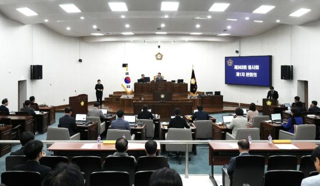 의회는 20일 제343회 임시회 제1차 본회의를 열고 오는 24일까지 5일간의 일정으로 시정질문을 비롯해 조례안 및 동의안 등 총 20개 안건을 심의‧의결한다고 밝혔다.
