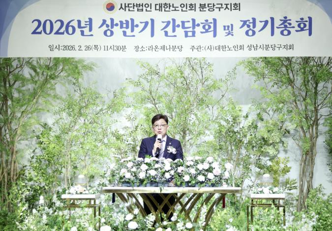 [뉴스노크=김인호 기자] 성남시의회는 26일 라온제나 분당에서 열린‘2026년 대한노인회 분당구지회 상반기 간담회 및 정기총회’에 참석해 어르신 복지 증진과 노인회 발전을 위한 소통의 시간을 가졌다.
