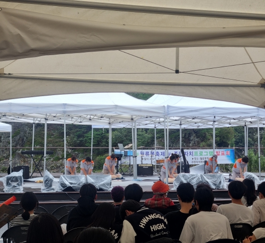 이날 이순진 대장을 포함한 119수호천사 10명은 월류봉 축제장에서 적절한 가슴 압박 방법 등 올바른 심폐소생술 방법을 설명하고, 행사 참여자들과 함께 직접 응급처치 방법을 체험 할 수 있는 기회를 제공해 큰 호응을 얻었다.