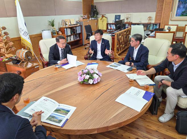 [뉴스노크=김인호 기자] 변광용 거제시장은 26일 ‘한·아세안 국가정원 조성사업’의 조속한 재추진을 위해 산림청을 찾아 김인호 산림청장과 면담을 가졌다.
